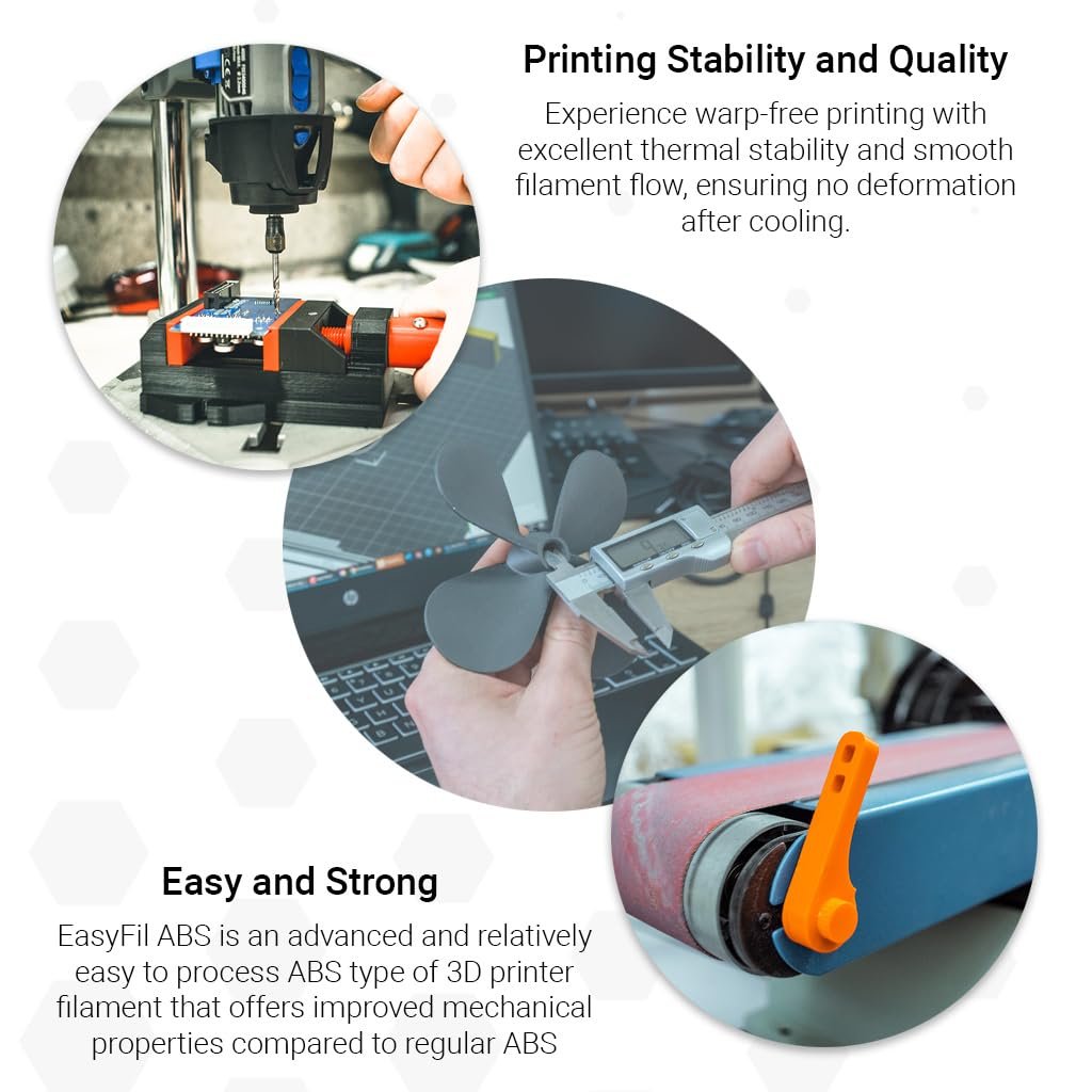 EasyFil ABS is an easy to use and high-end Acrylonitrile Butadiene Styrene 3D printer filament.�EasyFil ABS prints at slightly higher printing temperatures than regular ABS, but its superb process stability and physical features make EasyFil ABS a much more impact resistant and printable ABS type of filament compared to average ABS filaments.