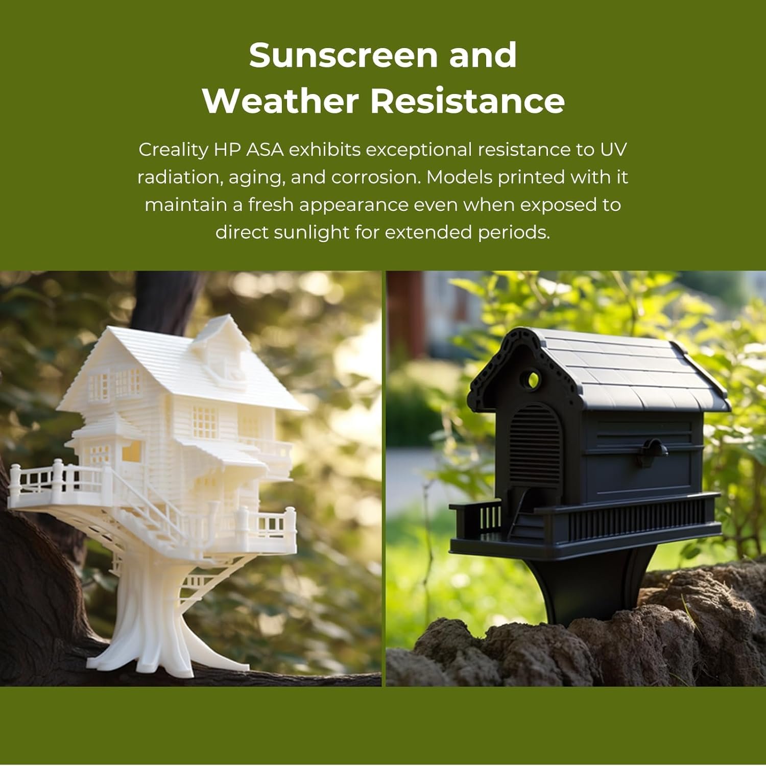 Sunscreen and Weatherproof – Creality HP ASA offers exceptional protection against UV radiation, aging, and corrosion. Models printed with it maintain a fresh appearance even when exposed to direct sunlight for extended periods.