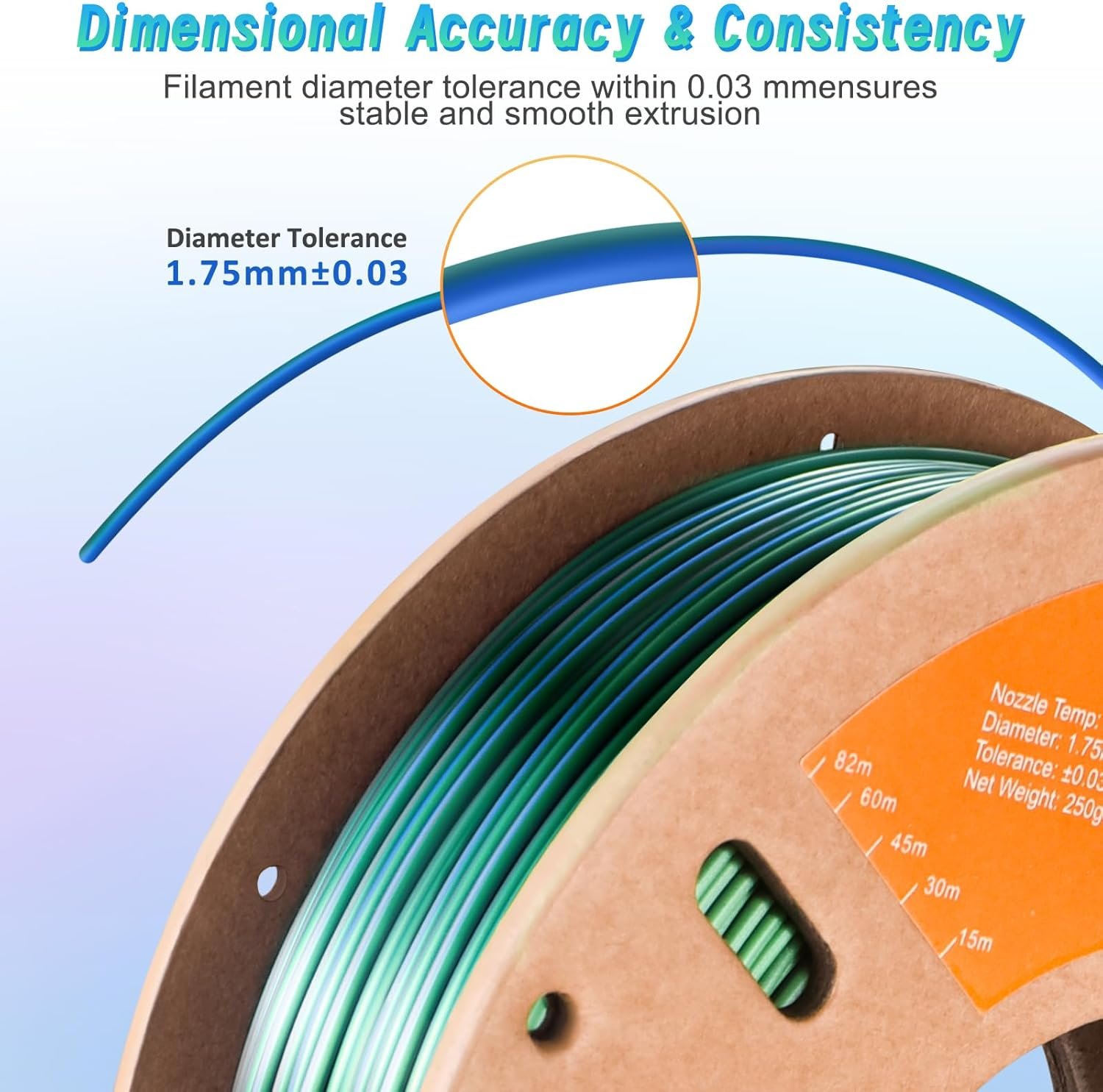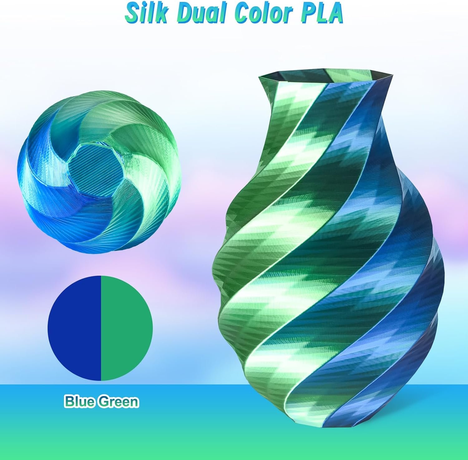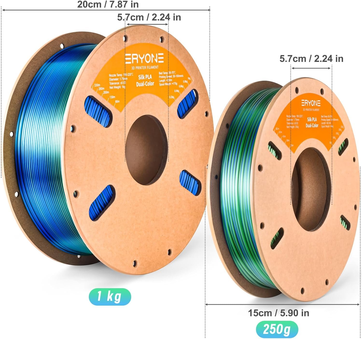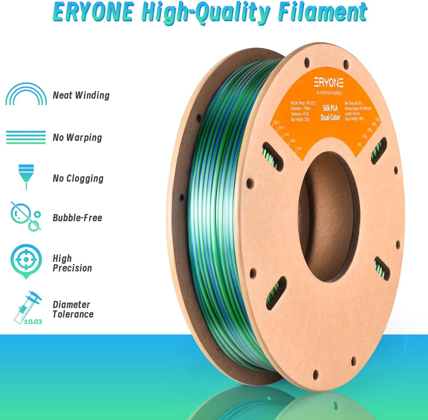 【ERYONE Silk Coextruded PLA】 1/2 of each combination of magicPLA coextruded filaments,You can change the visible color by rotating the color-blending filament to different orientations. Multicolor silk filaments can output with incredible pearlescent and gorgeous silk surface.