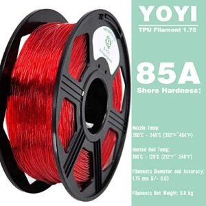 Flexible filament is made from TPU, thermoplastic polyurethane, with a shore hardness of 96A