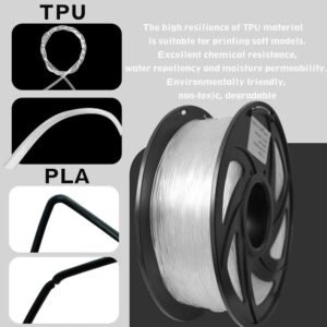 Gizmo Dorks provides many 3D filament material types including ABS, PLA, and HIPS. However, these traditional plastics are printed into a stiff and rigid form. New materials are being brought to market every day, and Gizmo Dorks is proud to introduce the flexible filament line. Gizmo Dorks flexible filament is based off of TPU, which is Thermoplastic Polyurethane. TPU flexible filament is a soft bendable plastic that retains it’s shape and form. It is a strong durable filament that is comparable to rubber. TPU filament has wonderful properties such as semi-transparency and elasticity. TPU plastic is also resistant to oils and grease.