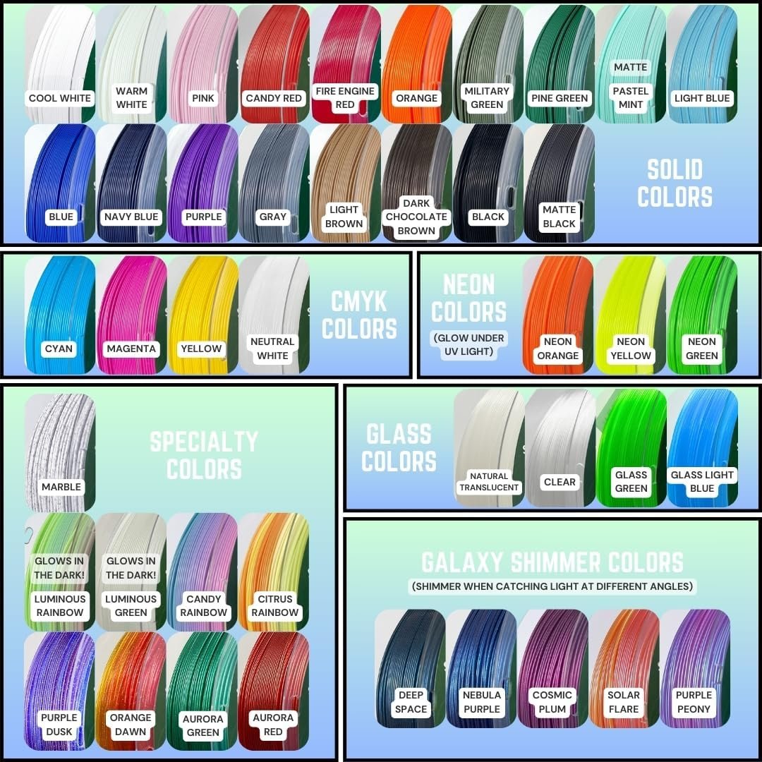 [Professional Quality High Speed 3D Printing Filaments] Our high-speed filaments are renowned for their top-quality performance. They are clog-free, bubble-free, and tangle-free, ensuring a smooth printing experience. Rigorous quality control measures are implemented to maintain consistent quality and color batch after batch.