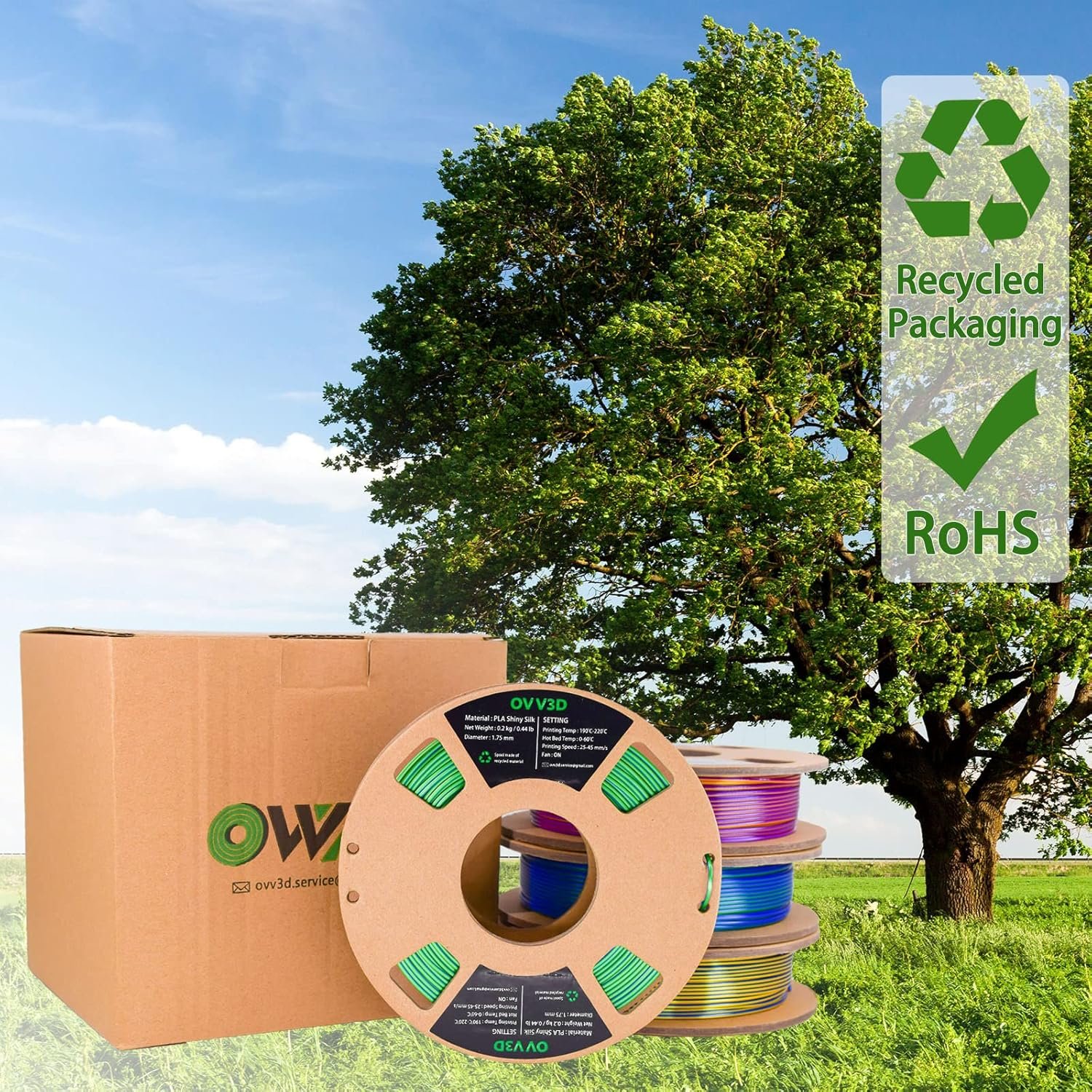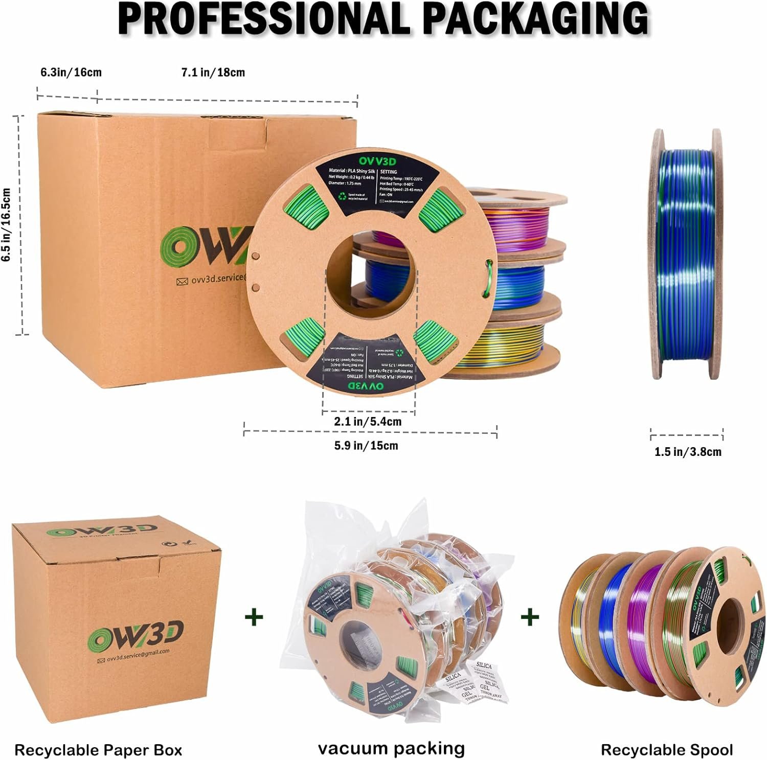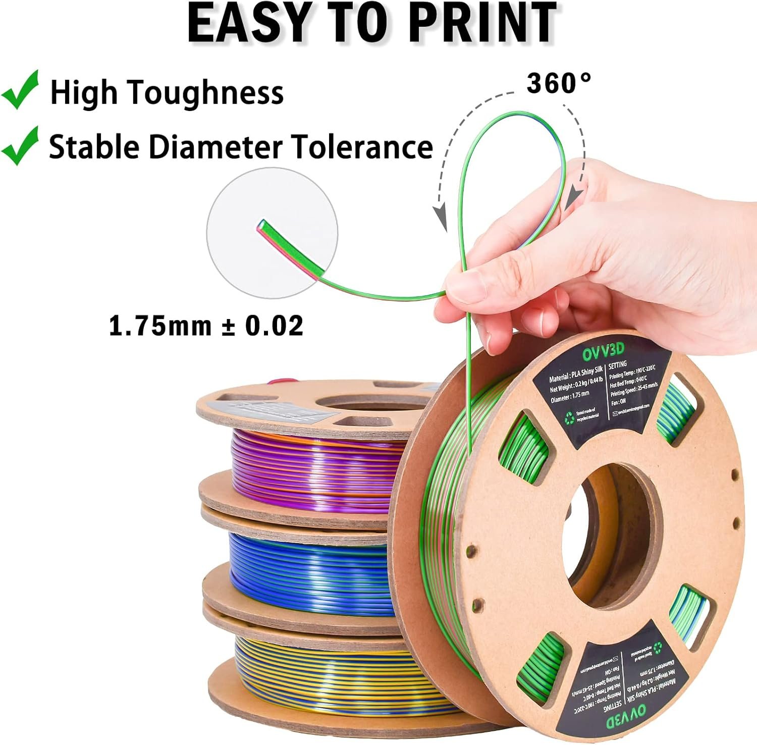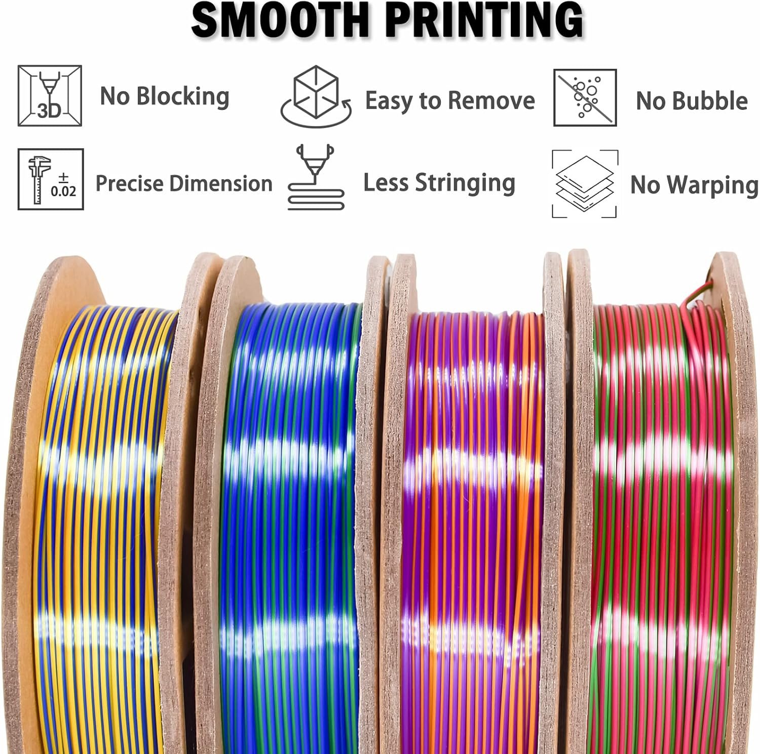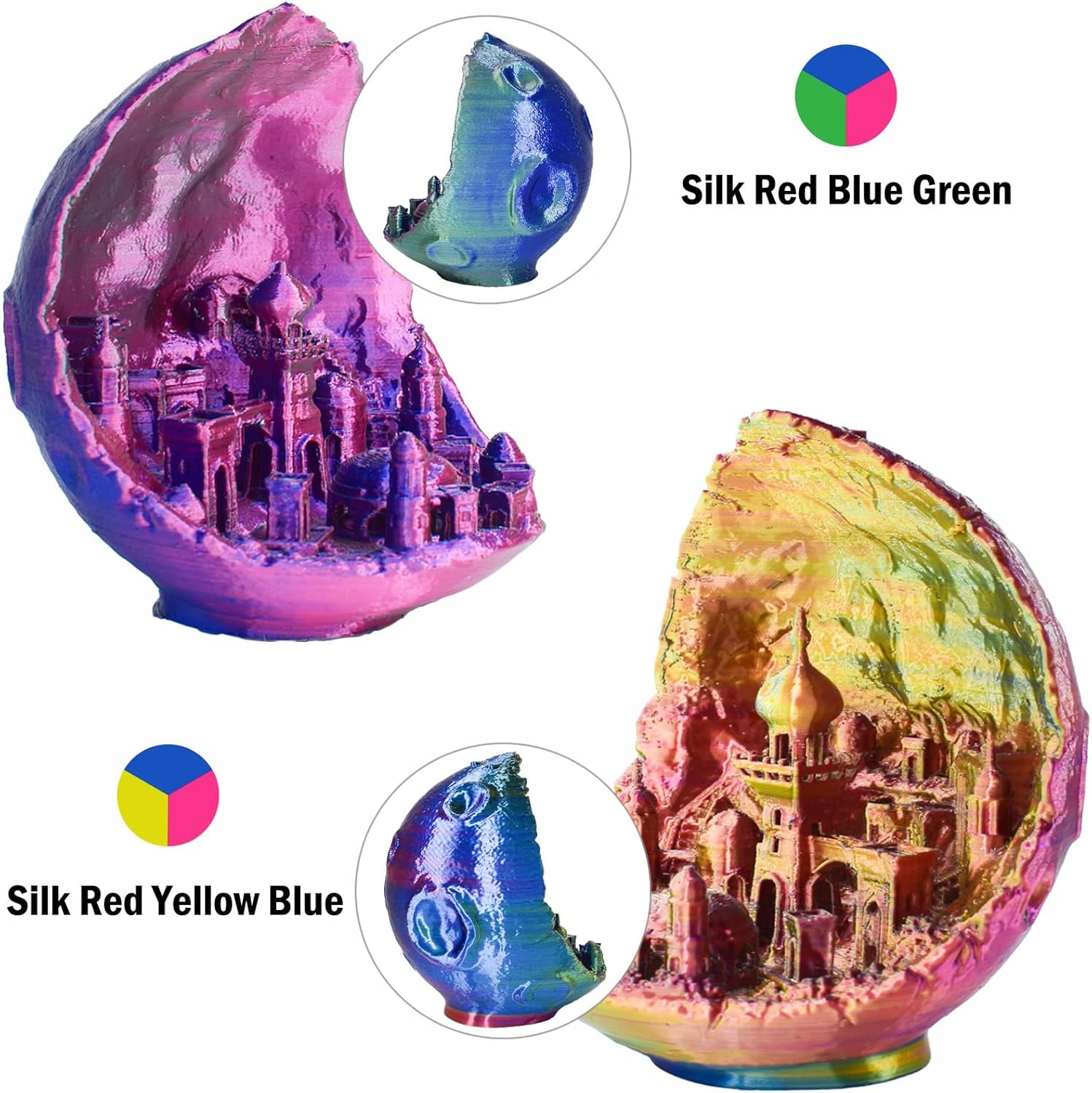 【Upgrade PLA Raw Material】The raw material comes from Europe, and it has been developed and modulated to show a charming gloss on the PLA. No jamming, no bubble, no tangle, and no layer line, just silk color changing PLA filament.