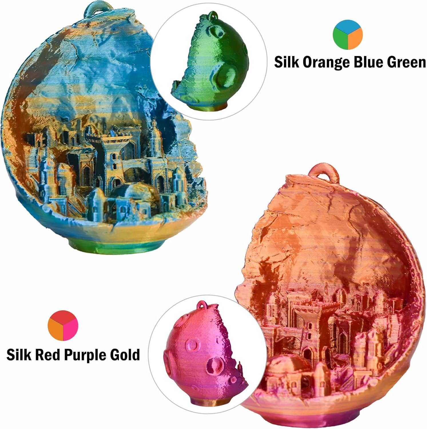 【Silk PLA Filament】We specialize in silk PLA filament so that the surface of this tri-color 3d printing filament is very smooth and shiny. What you 3d printing out will be as glossy as in the pictures, no exaggeration.