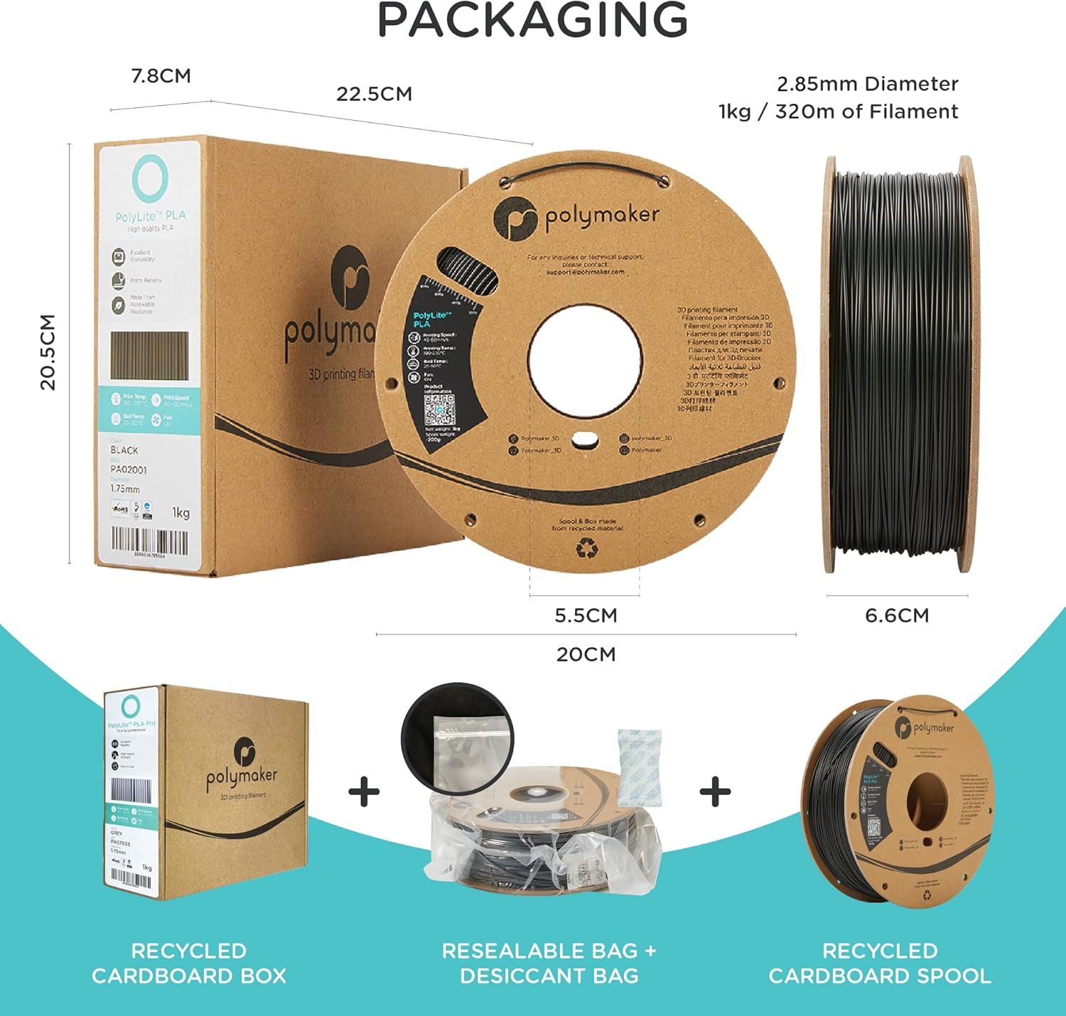 ♻️ Cardboard Spool: PolyLite 3D printing PLA filament is packaged in upgraded 3.0 version packaging, featuring a fully recycled cardboard spool and box. With a dedicated and innovative team, Polymaker continuously explores new possibilities.