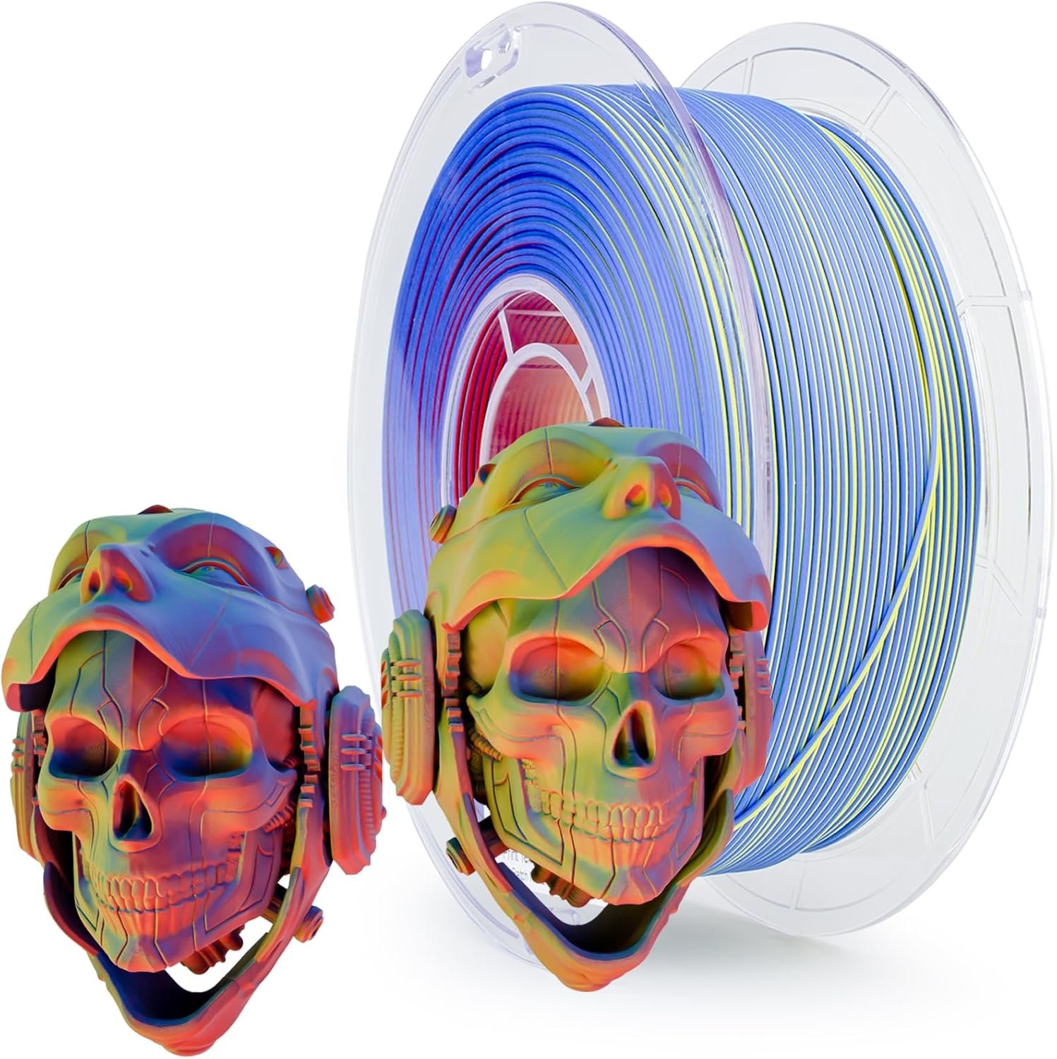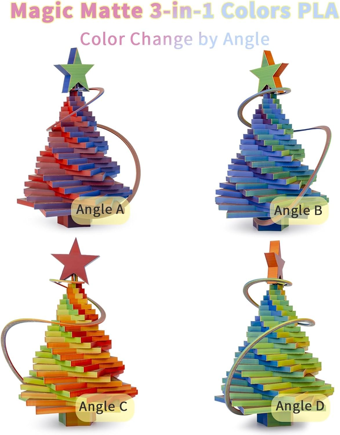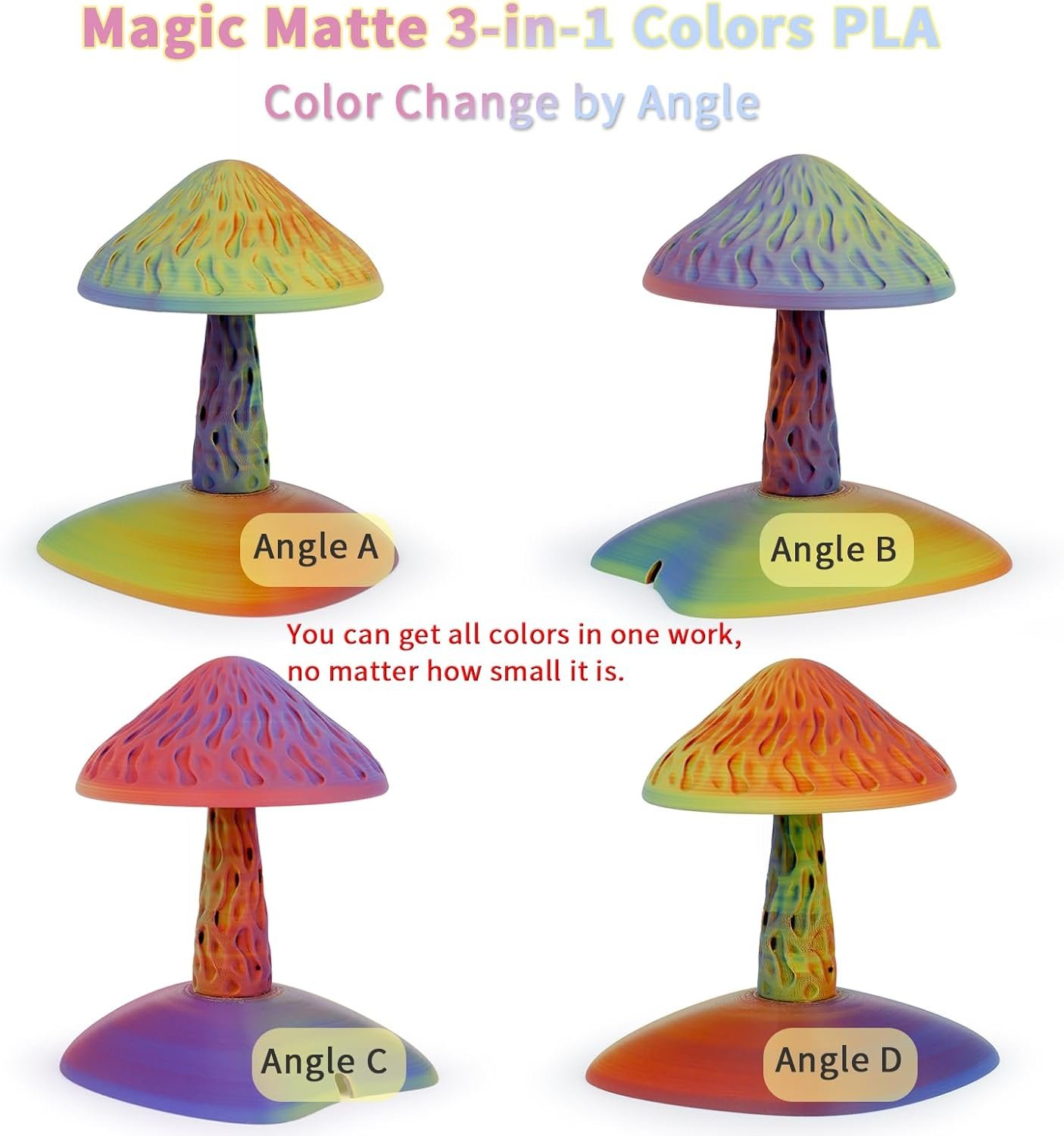 [Matte Tri-colors PLA]- The ZIRO Neon PLA coextruded three colors in one filament. Color changes from a different angle, and you can get magic discolorations on your works no matter how small they are. The matte surface achieves a shine-free, no-gloss, frosted look, giving your 3D works a modern and enigmatic appearance.